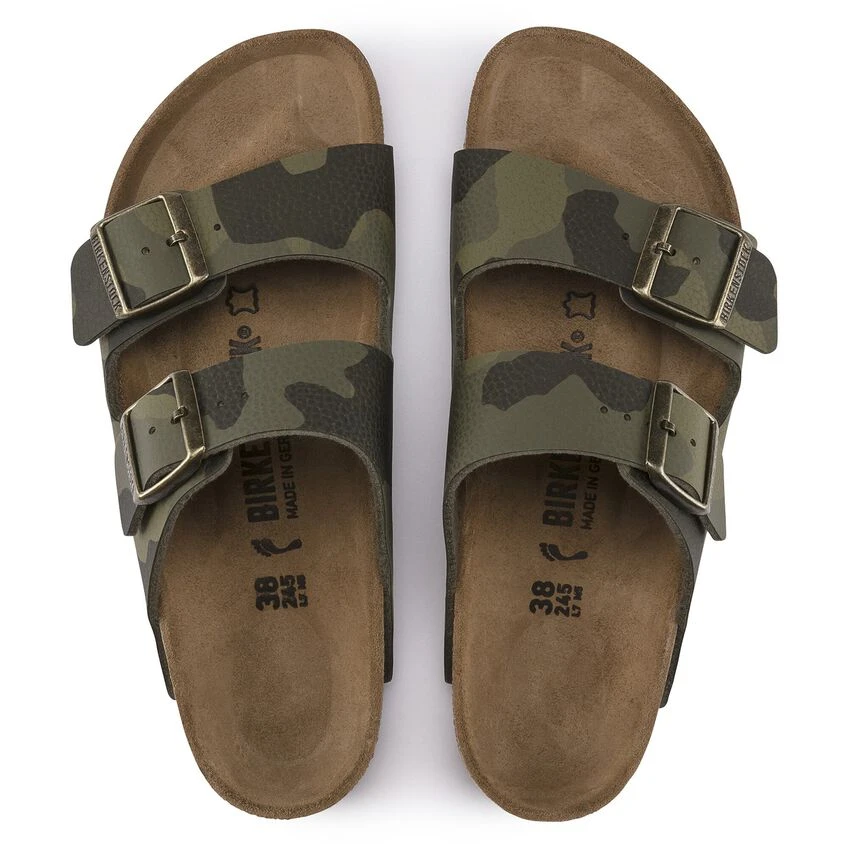 The legendary two-strap design from BIRKENSTOCK – the Arizona. Iconic style complemented with the signature comfort of the BIRKENSTOCK footbed. Shown in camo Birko-Flor®.