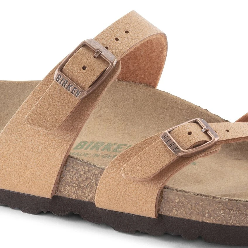 The Mayari from BIRKENSTOCK – an elegantly comfortable sandal with adjustable, crisscrossing straps that form a single loop around the toe. Classic support and adjustability, designed beautifully. Available in vegan materials and includes an upper made from Birkibuc, a skin friendly, hard-wearing synthetic material