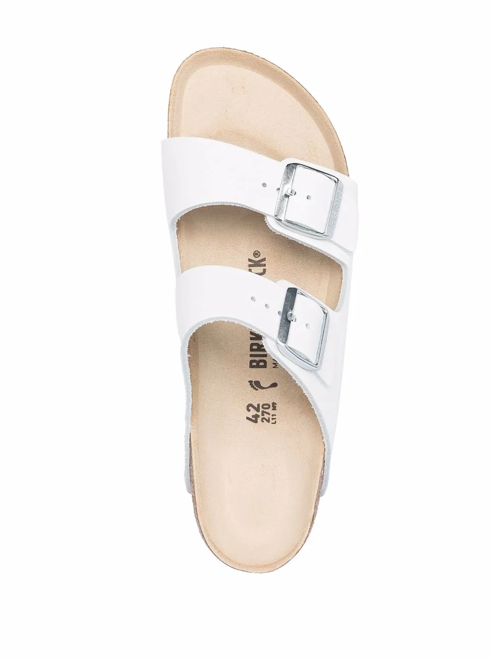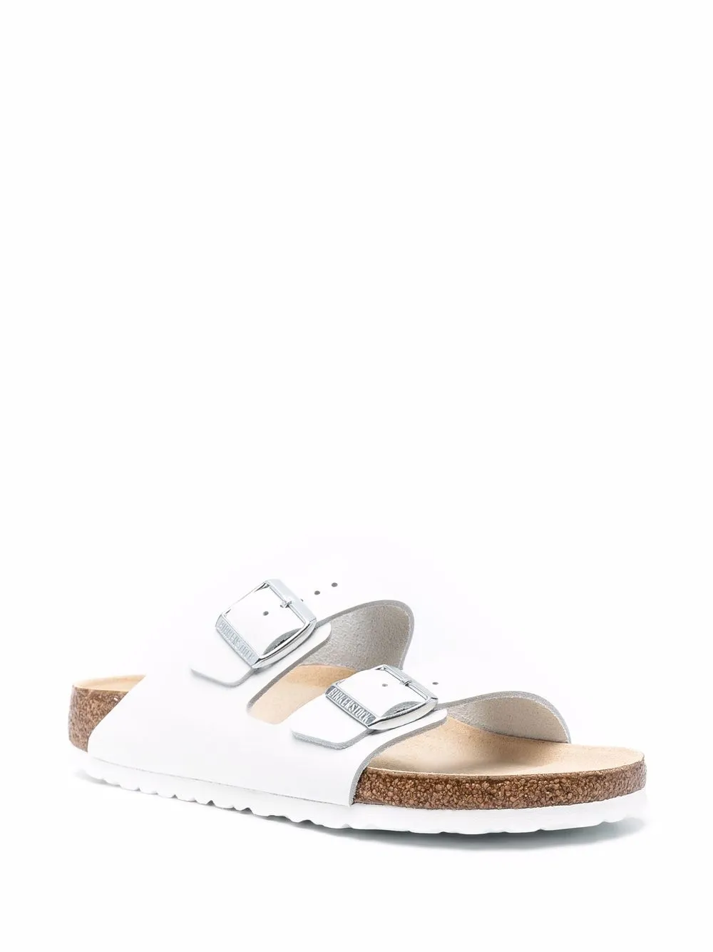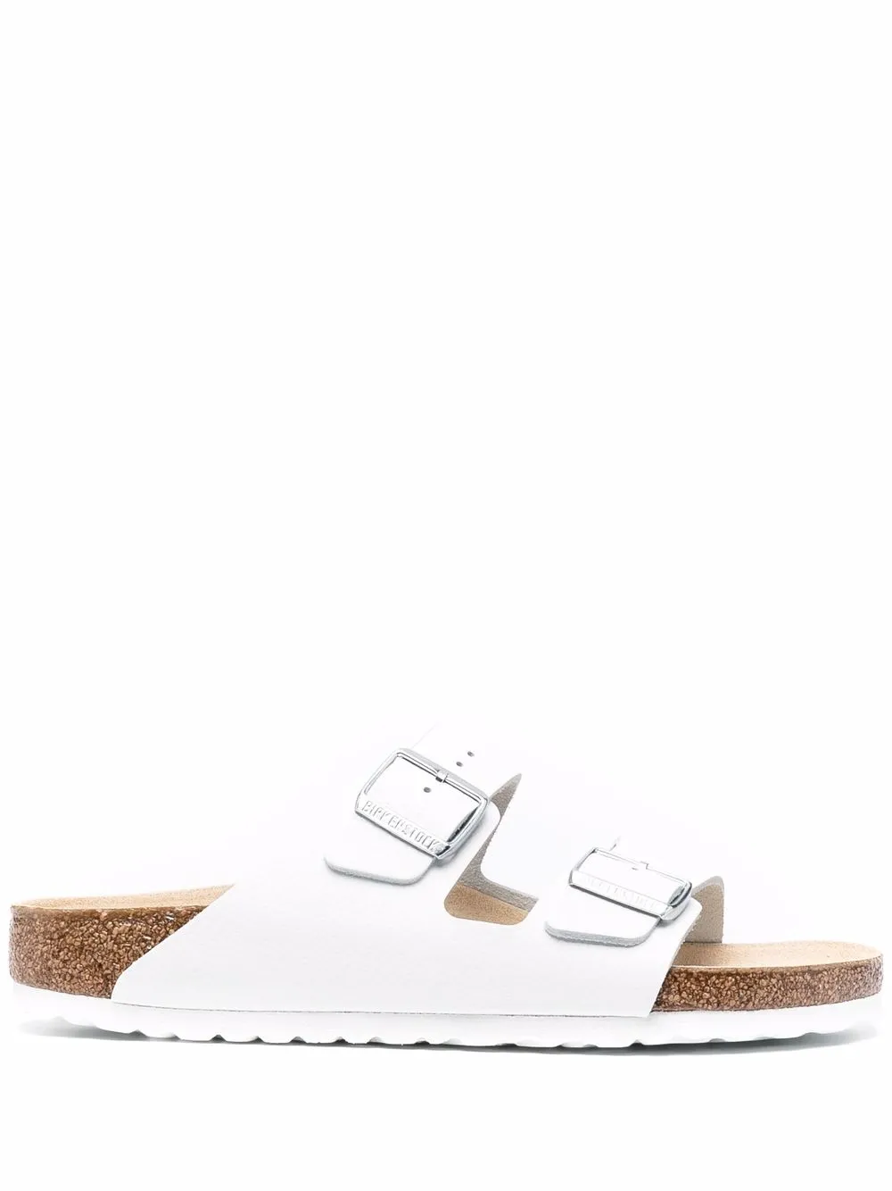 leather Arizona double-strap leather sandals from BIRKENSTOCK featuring grained texture, slip-on style, open toe, double-strap design, moulded footbed, branded leather insole and flat rubber sole.