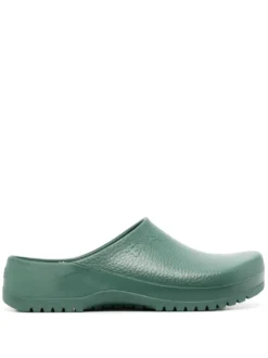 Super Birki slides from BIRKENSTOCK featuring emerald green, slip-on style, branded footbed and embossed logo to the front.