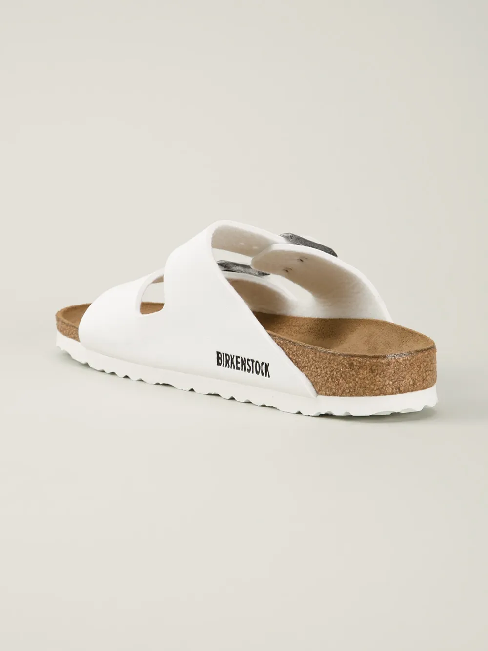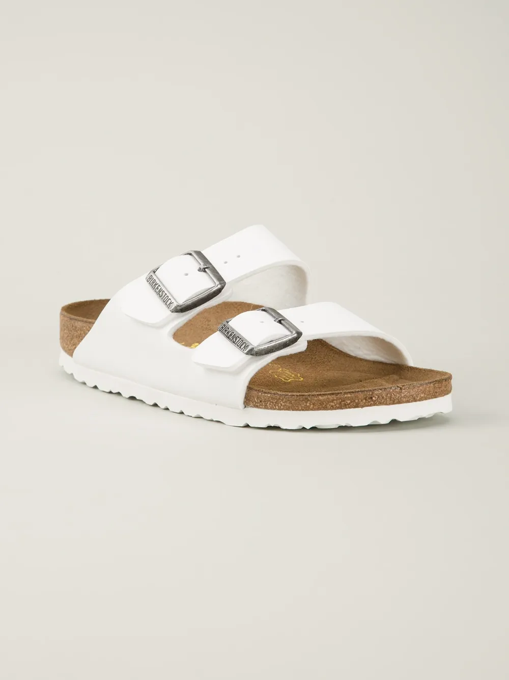 White leather ‘Arizona’ sandals from Birkenstock.