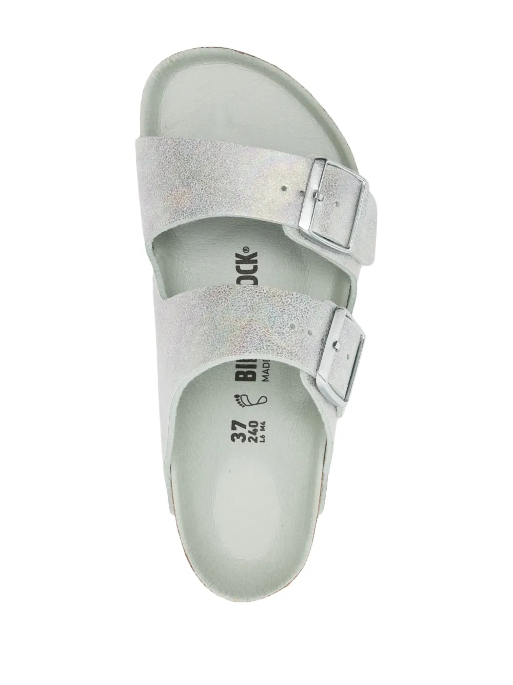 First introduced in 1973, the Arizona slides are a BIRKENSTOCK signature. This iteration features an iridescent, silky sheen. The original Anatomically shaped cork-latex footbed ensures a correct, natural position of the foot and a natural rolling movement.