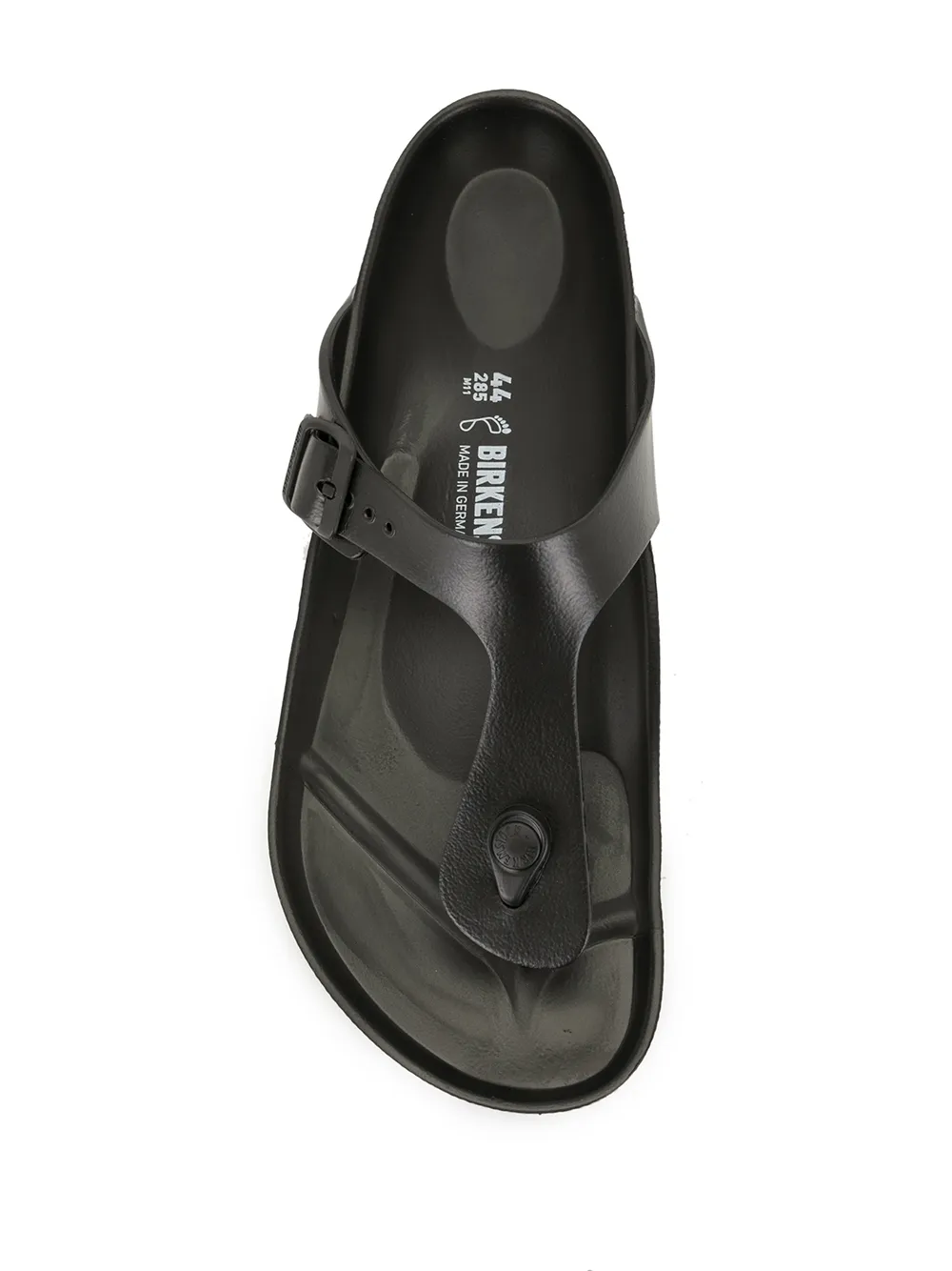 Black Gizeh Eva flat sandals from BIRKENSTOCK featuring open toe, slip-on style, branded insole and flat sole.