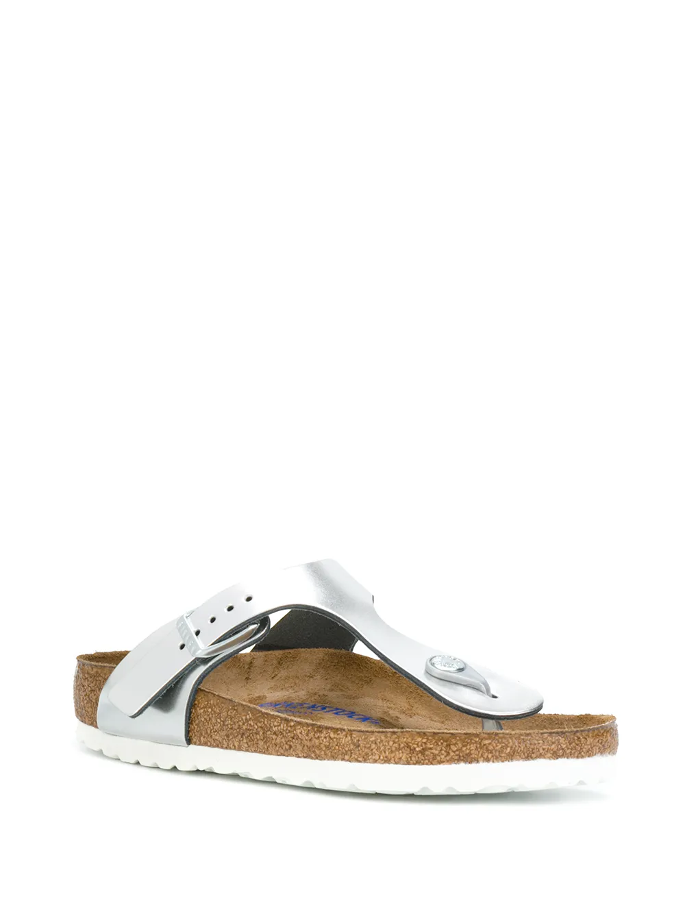 Silver leather and cork Gizeh sandals from Birkenstock.