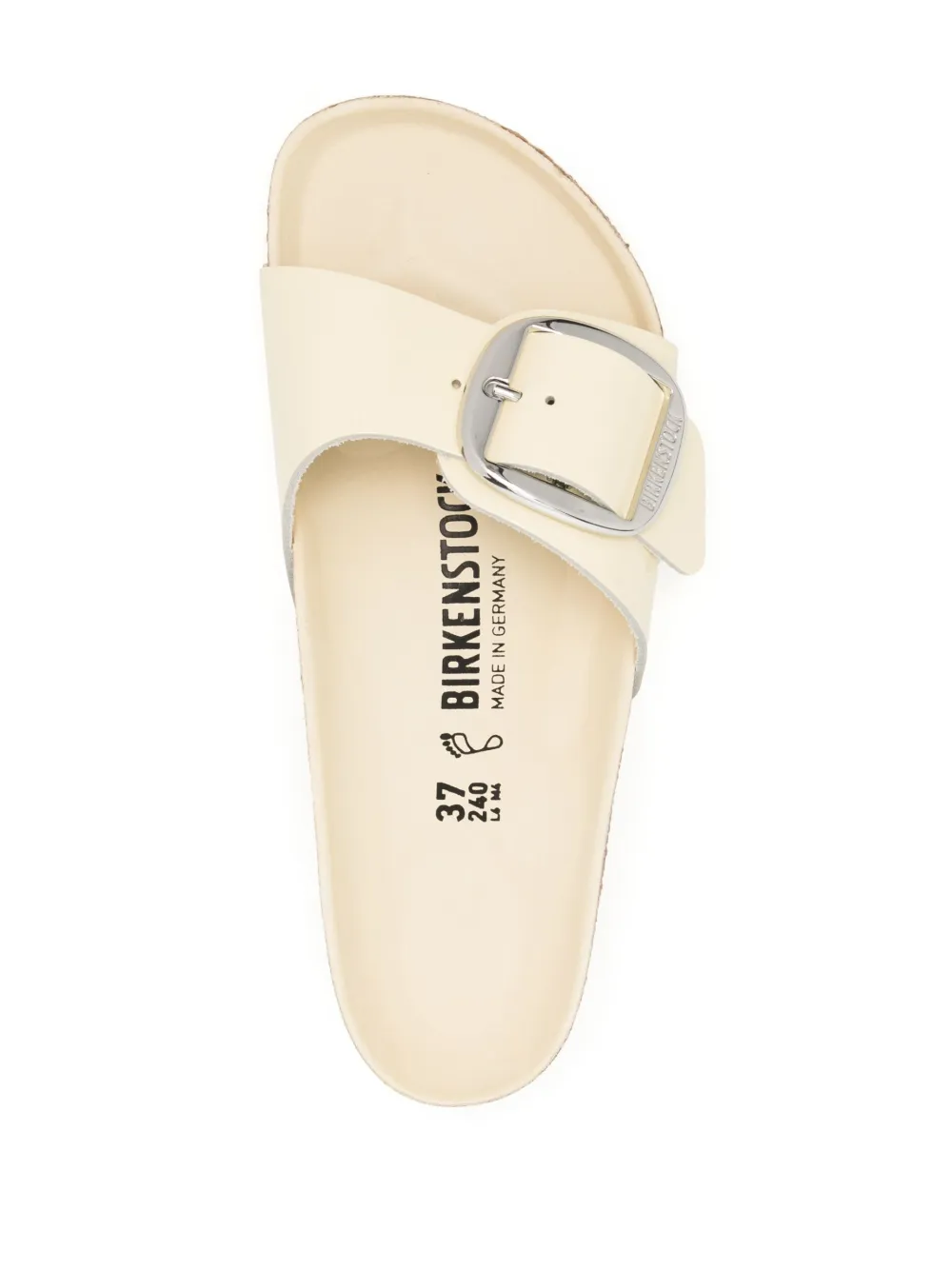 Crafted from soft leather, the BIRKENSTOCK Madrid slides were first launched as a gymnastics sandal half a century ago. This iteration features a large, elegant pin buckle, adding a bold flair to the minimalist aesthetic.