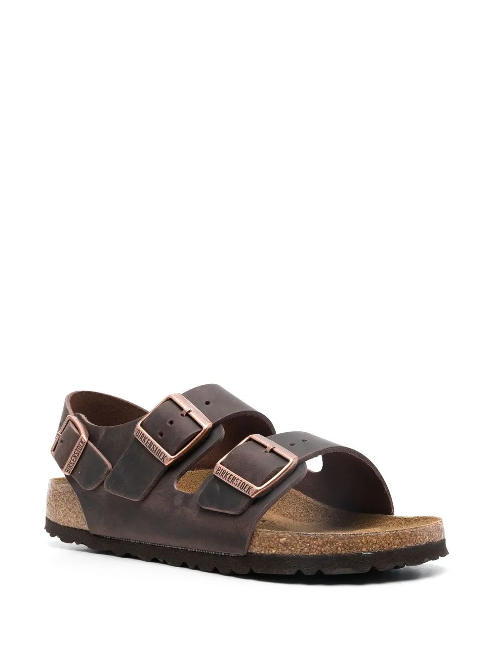 Milano buckled 35mm sandals from BIRKENSTOCK featuring brown, calf leather, open toe, buckle fastening, branded insole, moulded footbed and rubber outsole.
